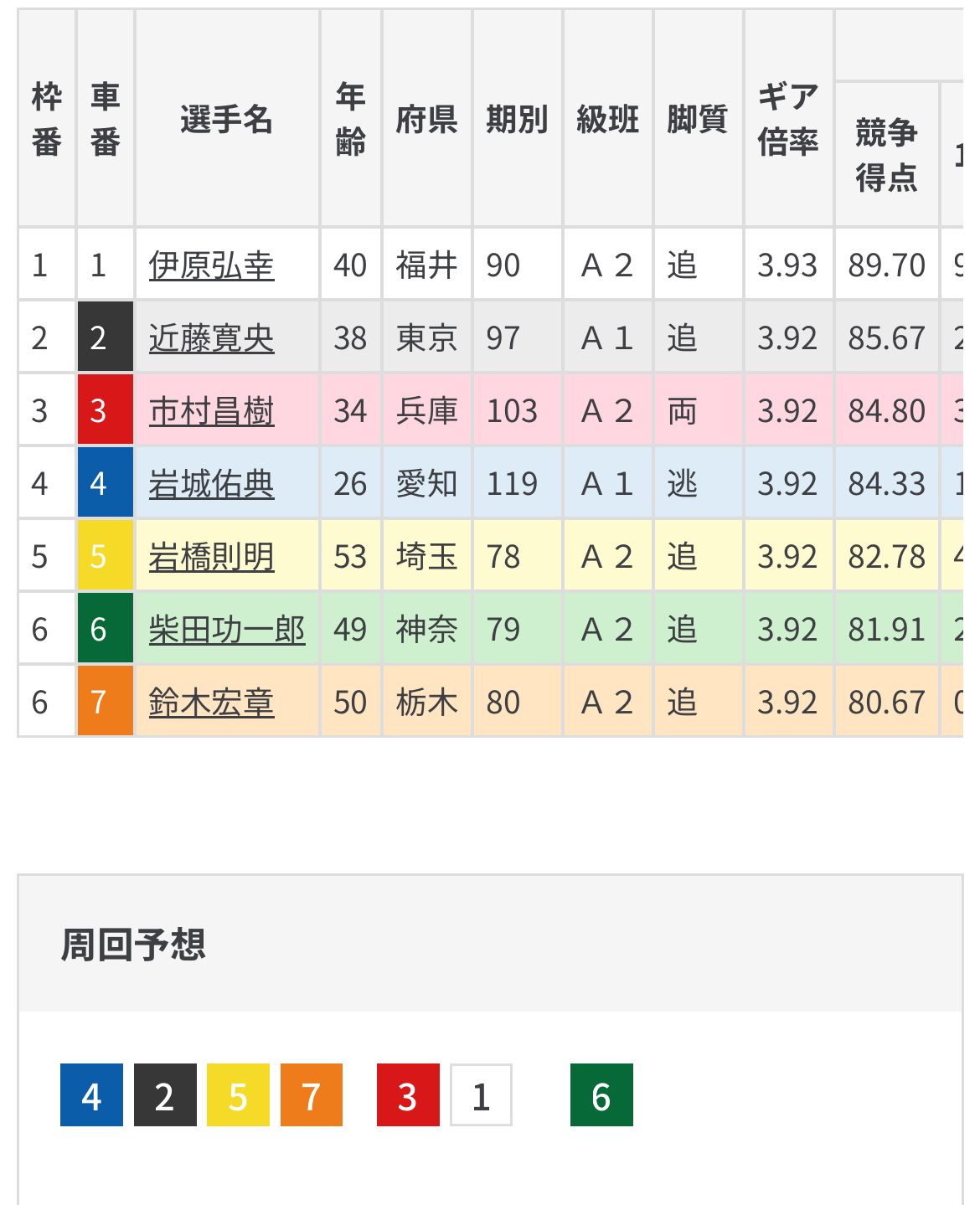 前回の西武園ライブでも突っ張り先行で後方に追いやられた市村は何もできなかったため今回も6番手のブーメランで後ろに追いやられる可能性が高い