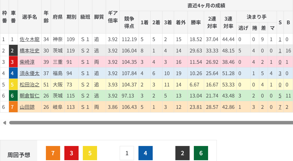 それでも良い捲りを放っている⑦山田が仕掛ければ②橋本を越えることは可能と見る。