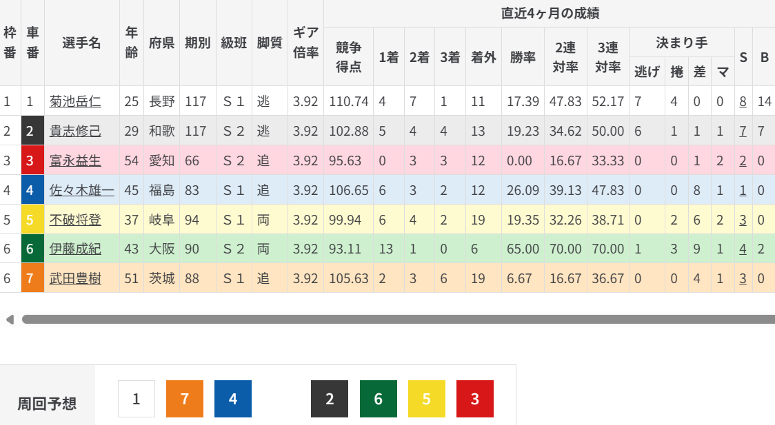 しかし、昨日の⑦武田選手の番手を見るとこの人気も怪しさMAX。