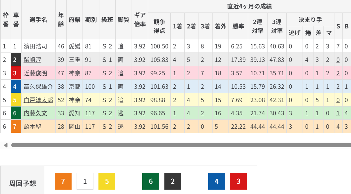 ④高久保は初日に⑦畝木①濱田の後ろにハマってそのまま追い込めずの3着。