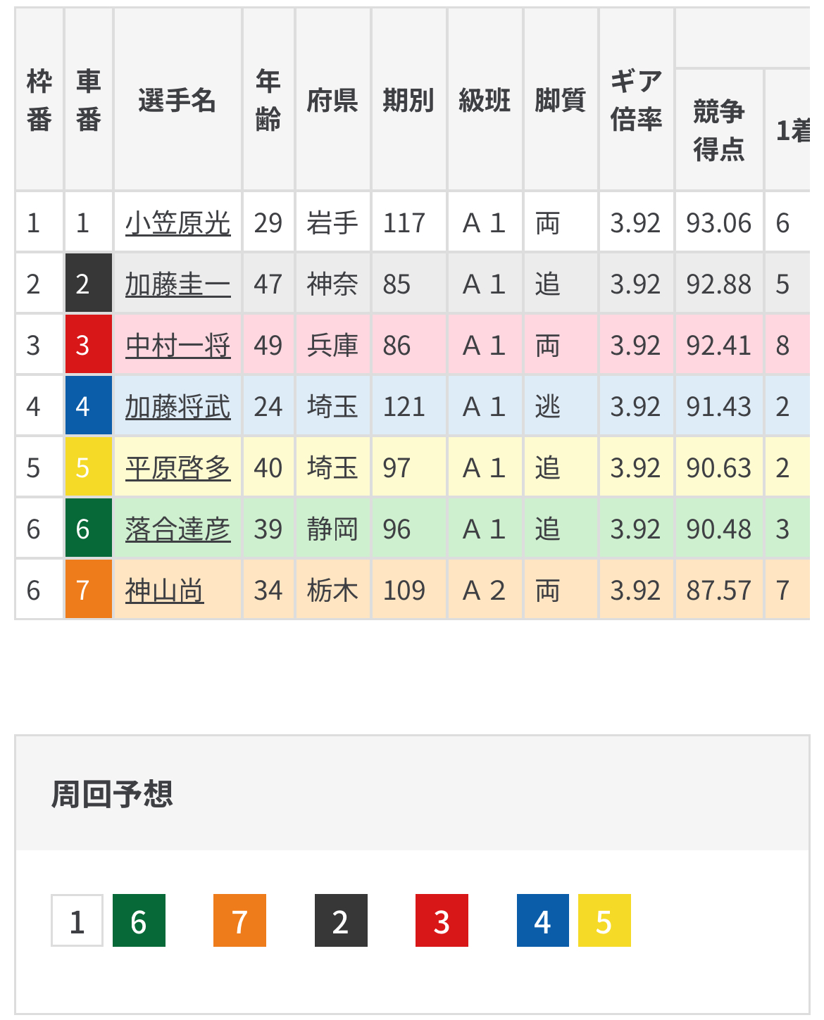 地元地区の中村一将も完全Vがかかっているだけに初日のような仕掛けはせずとなればより加藤将武の主導権は濃厚になりそうで積極性不在でペースなら番手平原の絶好展開になり番手抜け出しが決まる。