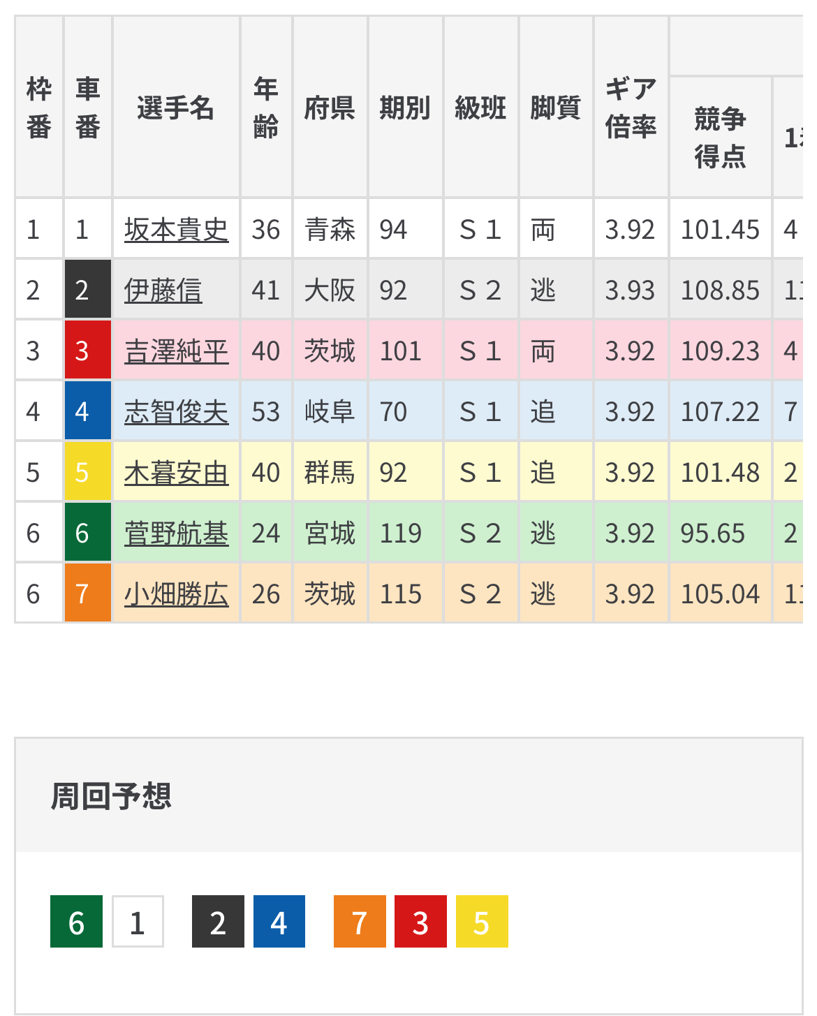枠番有利且つスタート早い坂本の前受けから小畑の上昇を突っ張り切り先行態勢から坂本の番手発進を見据える。