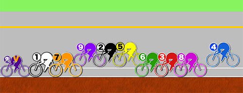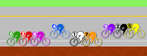 ❶深谷1人旅だとしたら、相手には逃げ番手の③柏野と⑧原井と単騎の❹宿口にした。