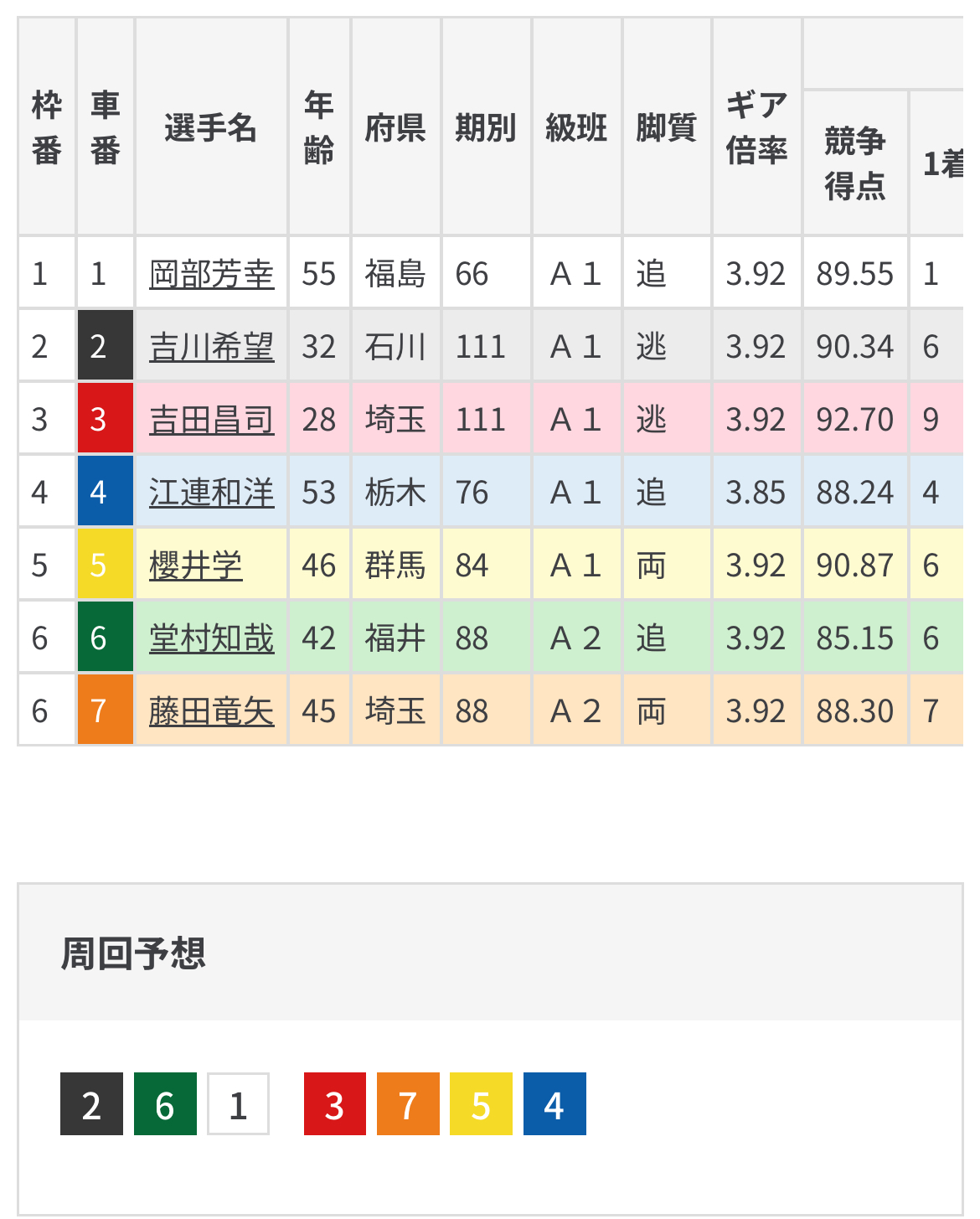 無条件の4番手が取れる吉田が直線勝負となれば前3車ライン相手候補
