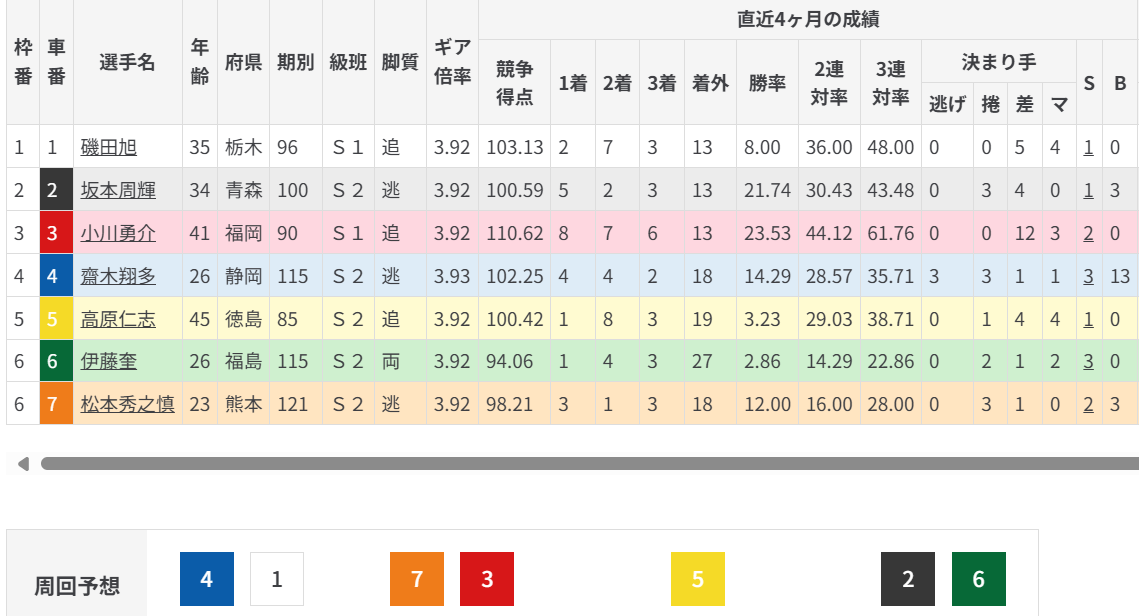 それでも①磯田は展開絶好、脚の良い②坂本は3番手から捲り追い込みとなるので、③小川に関しては1着には届かない。