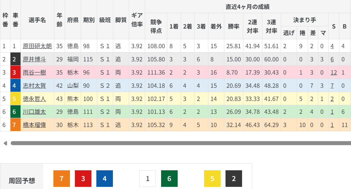 ただ、どの並びになろうと⑤徳永が中団を主張して来そう。