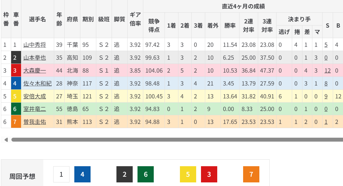 対する①山中は昨日⑤安倍を叩いているのは勿論、初日の外並走での粘りも評価出来る。