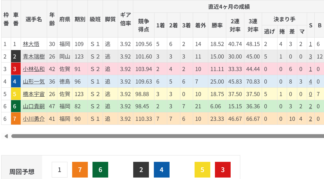 [武雄10R : S級準決勝] (民間締切時刻 19:33)
