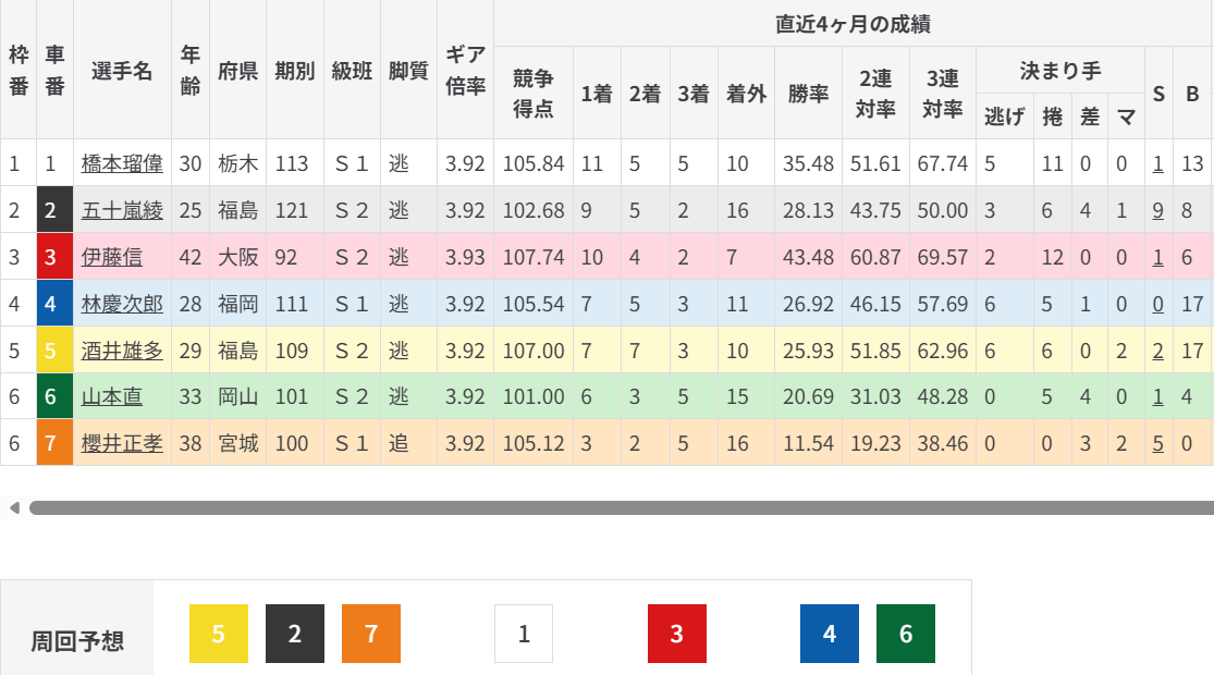 最終バックから捲り勢が動くなら、②五十嵐の番手捲りが余裕で決まる。