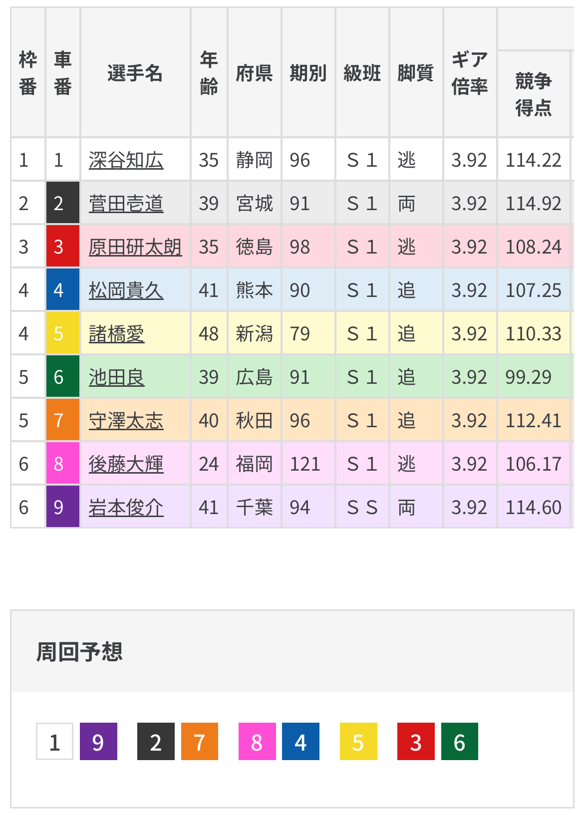 もう一つ浮かばれる展開として深谷は1着が欲しい分今日は番手岩本にゴメン〜と捲り勝負に構えたとき。