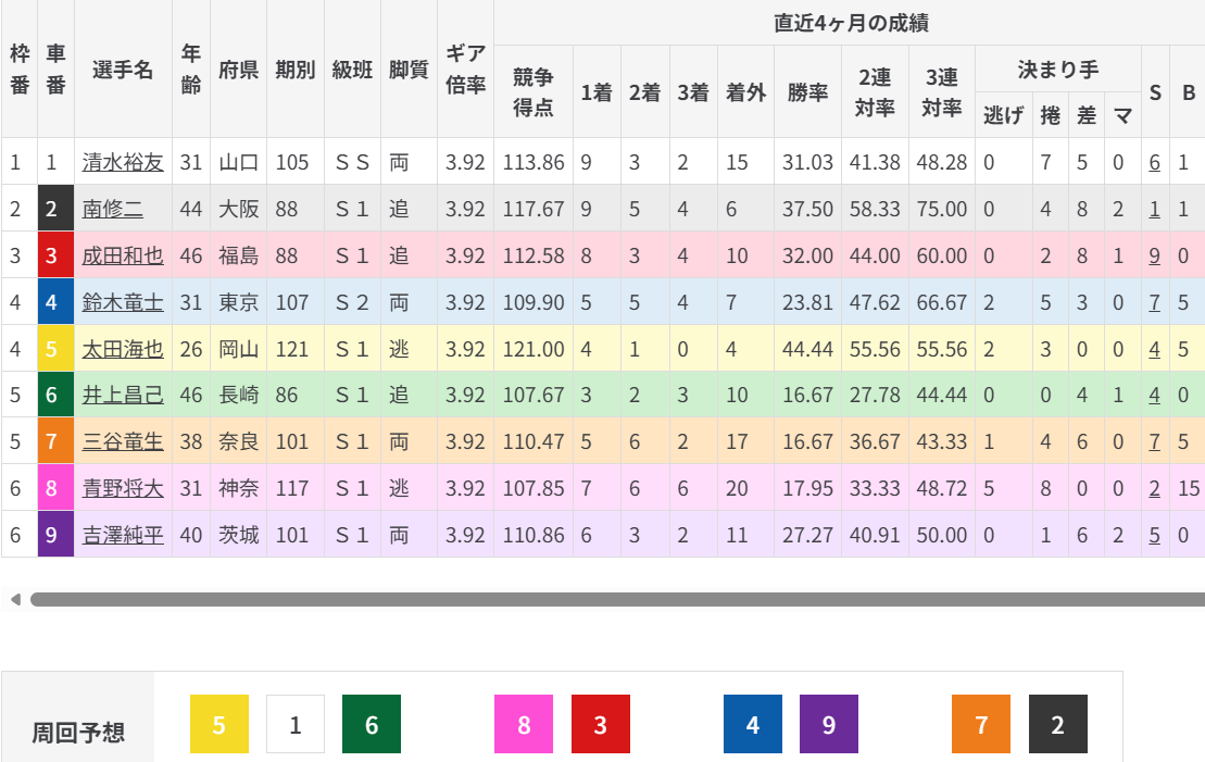 [小倉10R : S級一予2] (民間締切時刻 19:26)