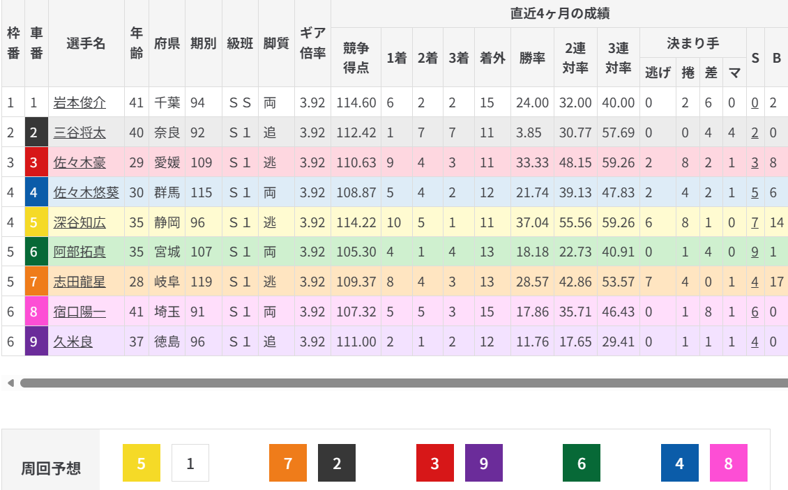 捲った時の相手は脚が良い方でスタートも速い⑥阿部、超抜①岩本まで。