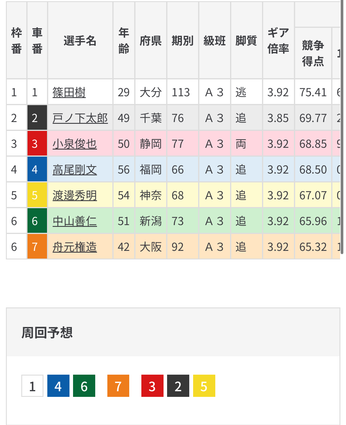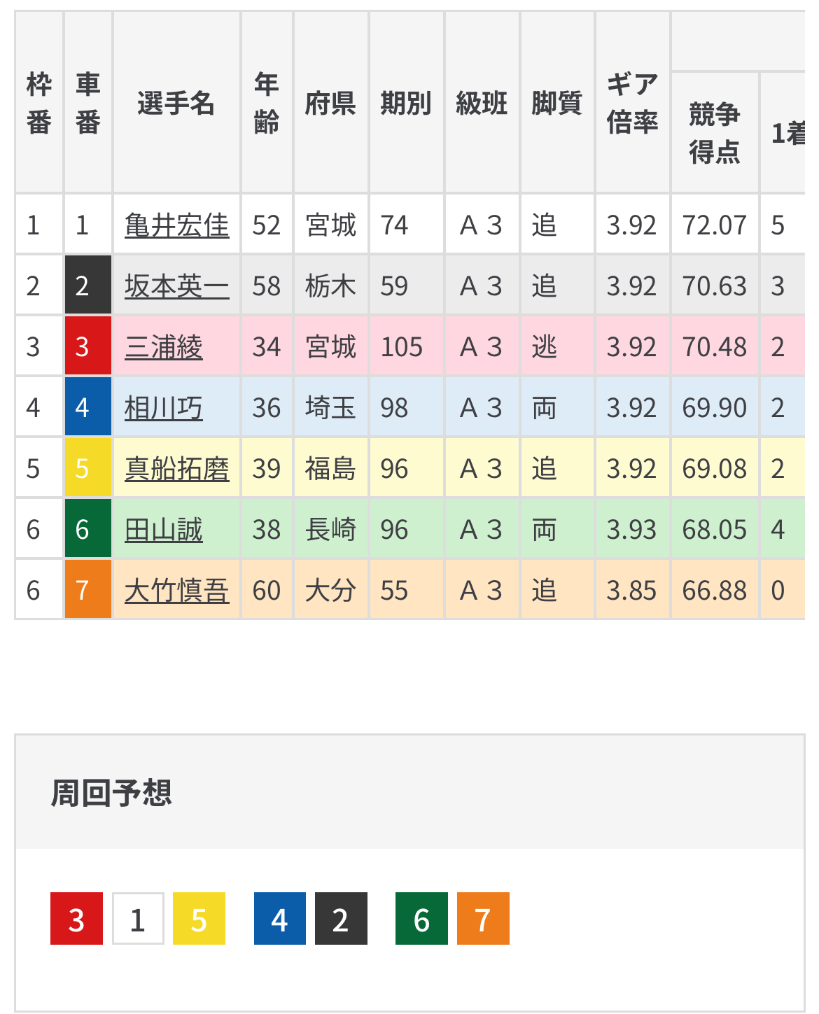 マイペースで逃げると強い田山だが、番手の大竹の番手抜け出しにも期待。