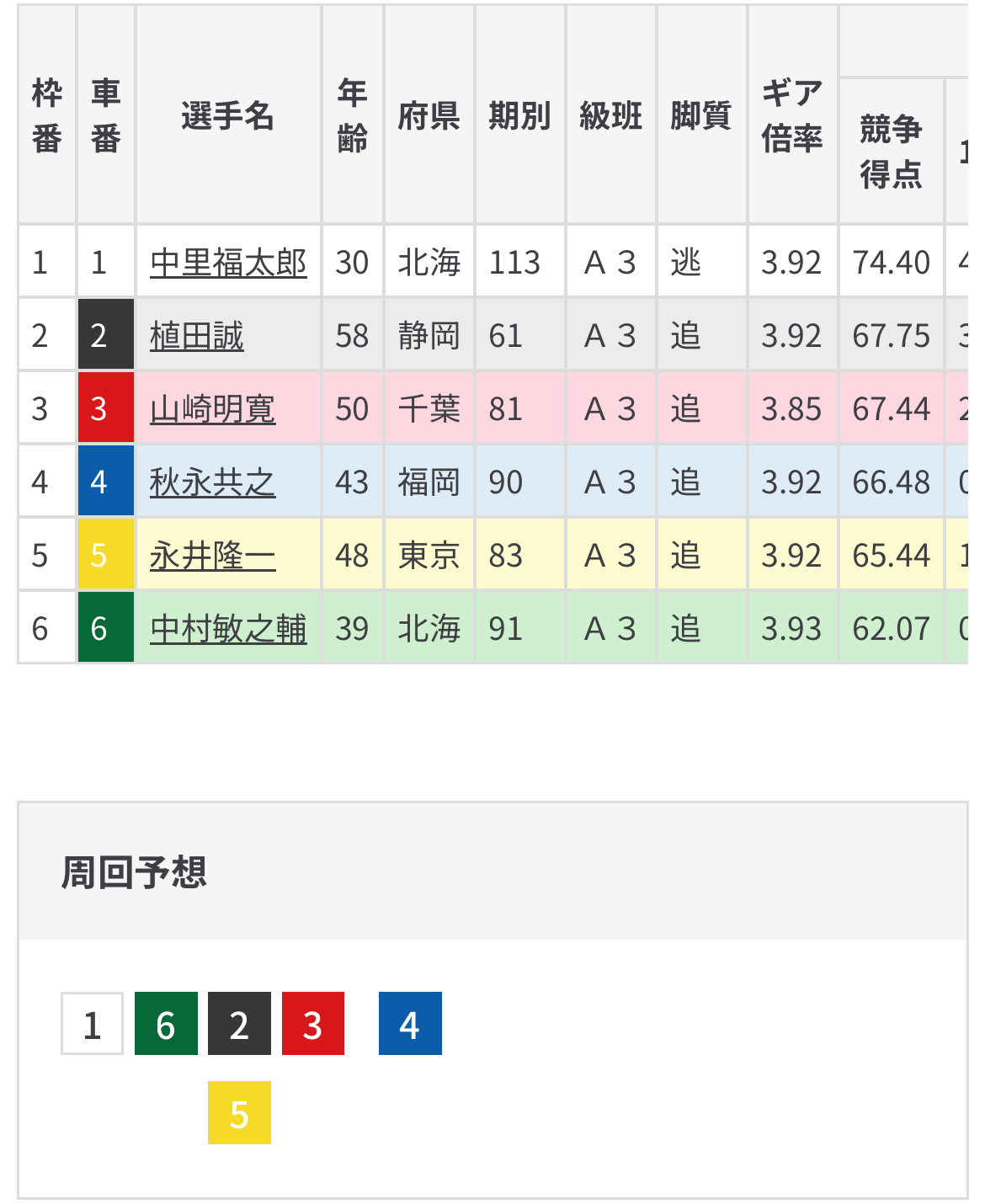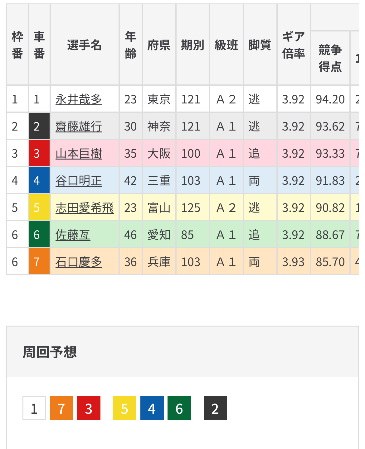 特進がリーチの永井哉多は捲りに構えることになりそう。