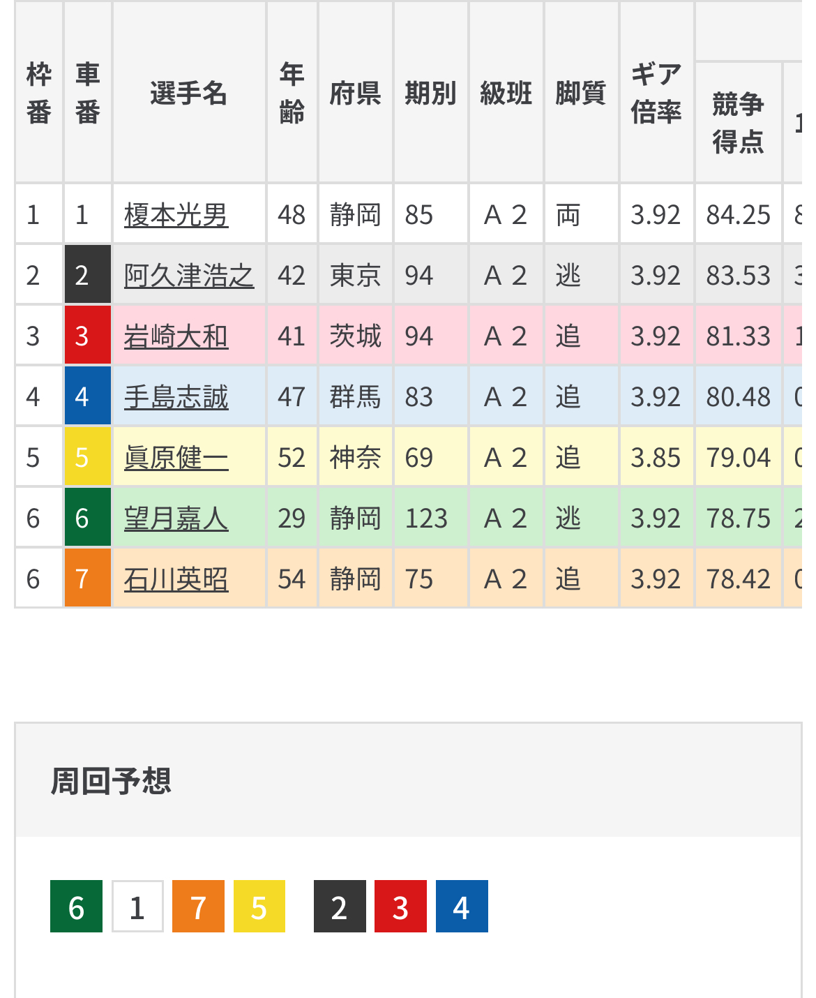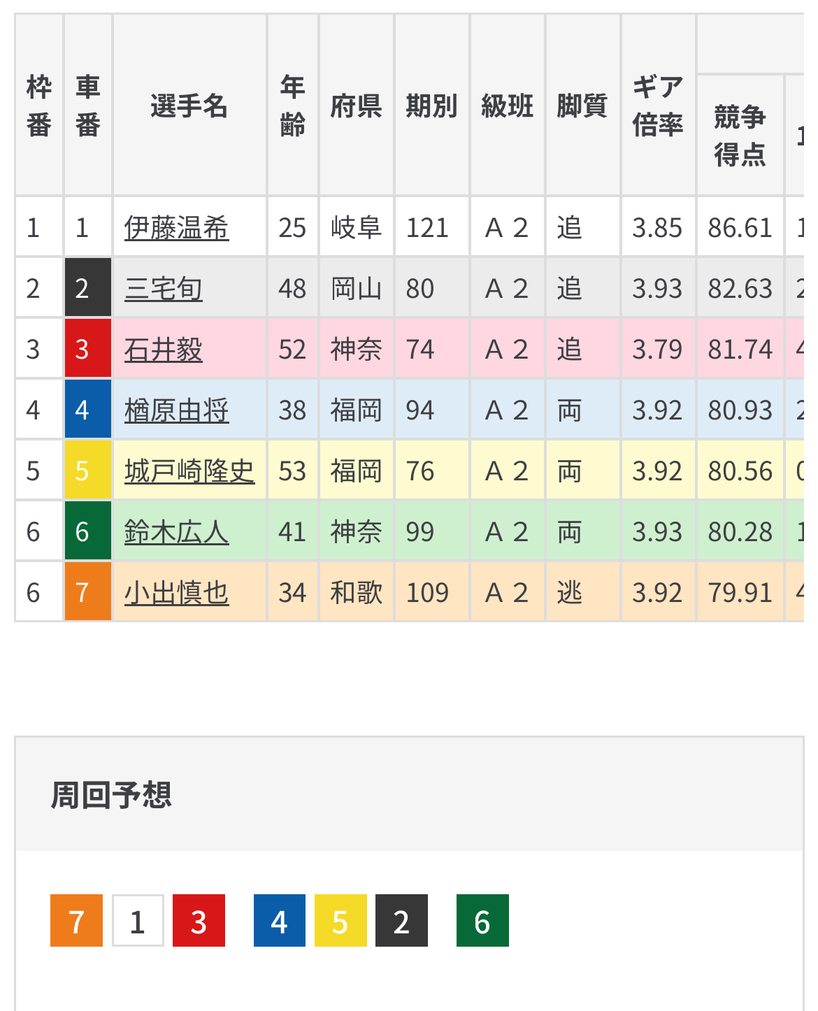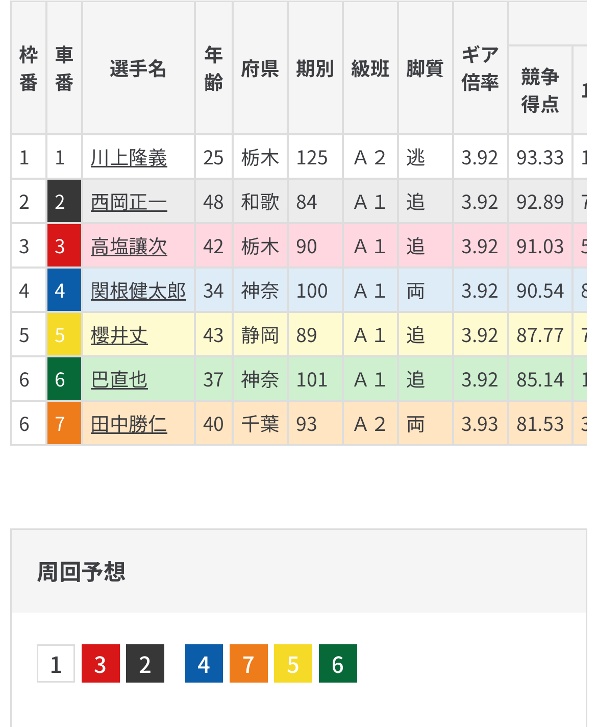 さすがに3人いるだけに阿久津は5番手からになるが榎本の周りを固める選手たちの脚が不安だけに直線だけでやってくる関東勢も相手に加える。