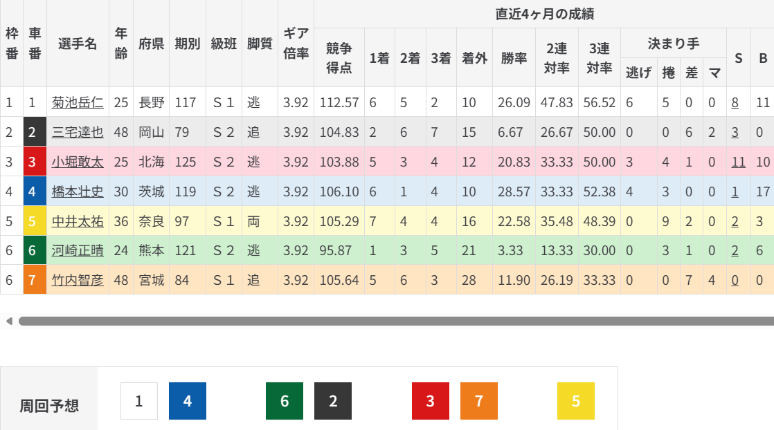 ①菊池も優勝を狙うとコメントしているので突っ張り先行はない。