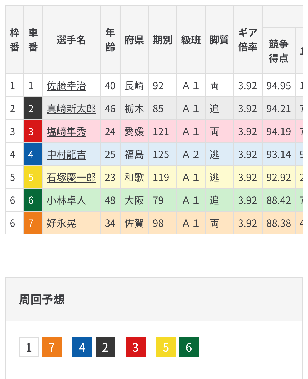 相手には中村、単騎ストレスなく自分の走りができる塩崎、力上位の佐藤