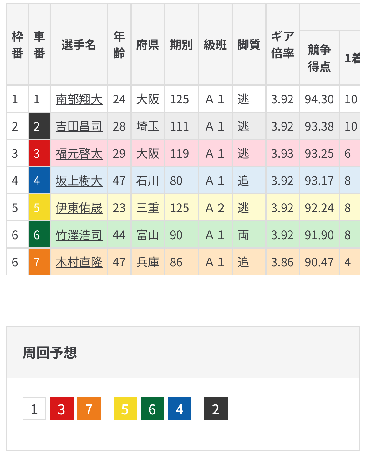 前回の地元戦では不甲斐ない成績だった借りも返す意味で番手から遠慮なく出る福元の抜け出しを狙う。