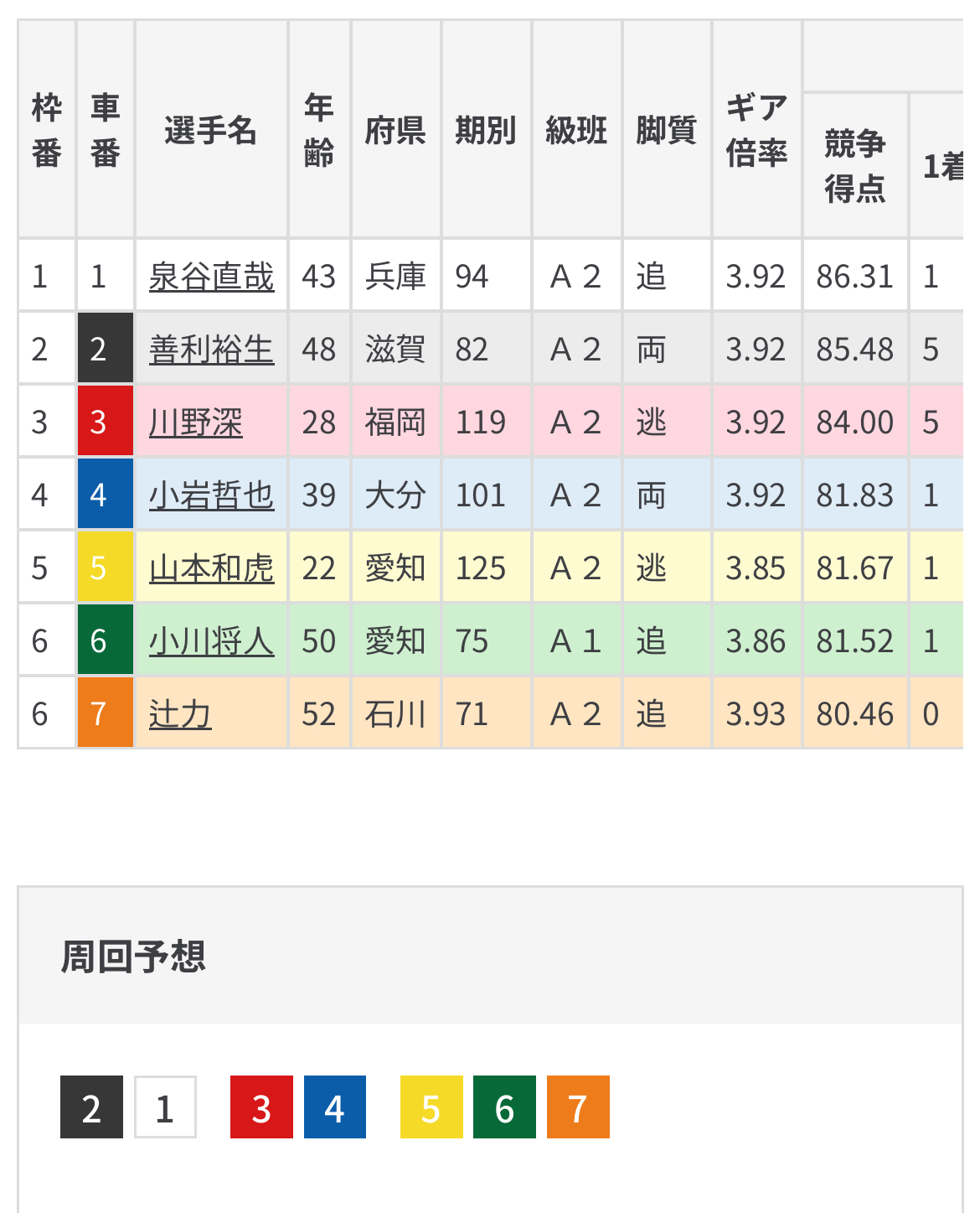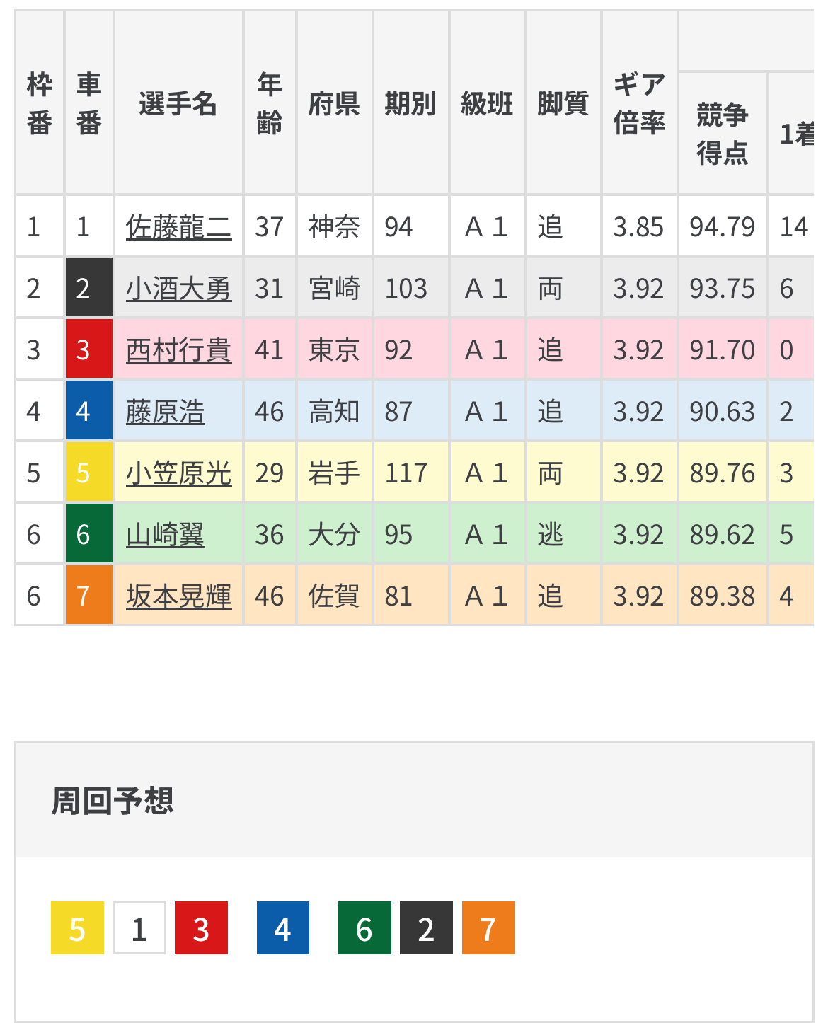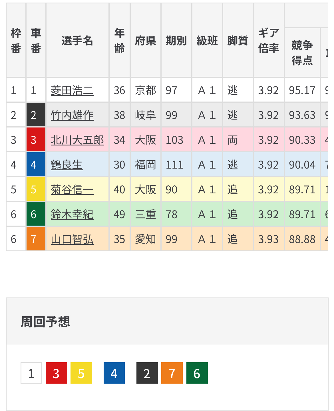 竹内も勢いと地元を背負うだけに早めの仕掛けもありそうで今開催得点上位2人のやり合い展開勃発なら