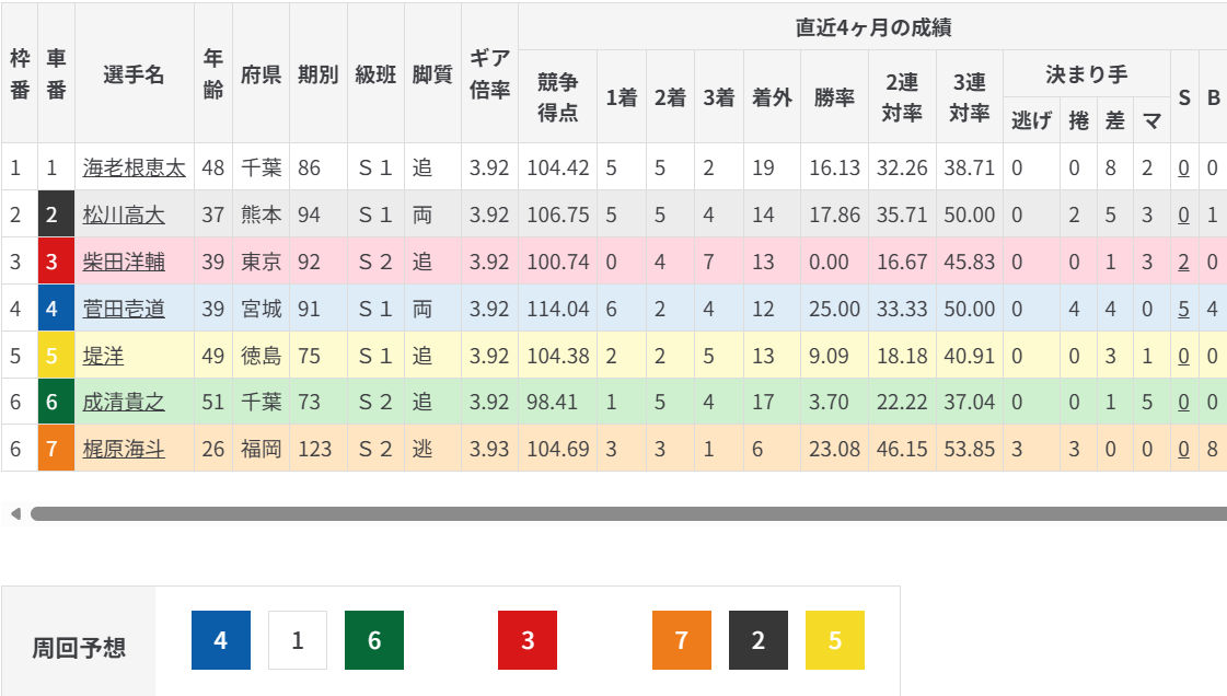 逆に④菅田の突っ張り先行なら、素直に1-4-26と、⑦梶原が捲りきる27-27-1、17-17-246。