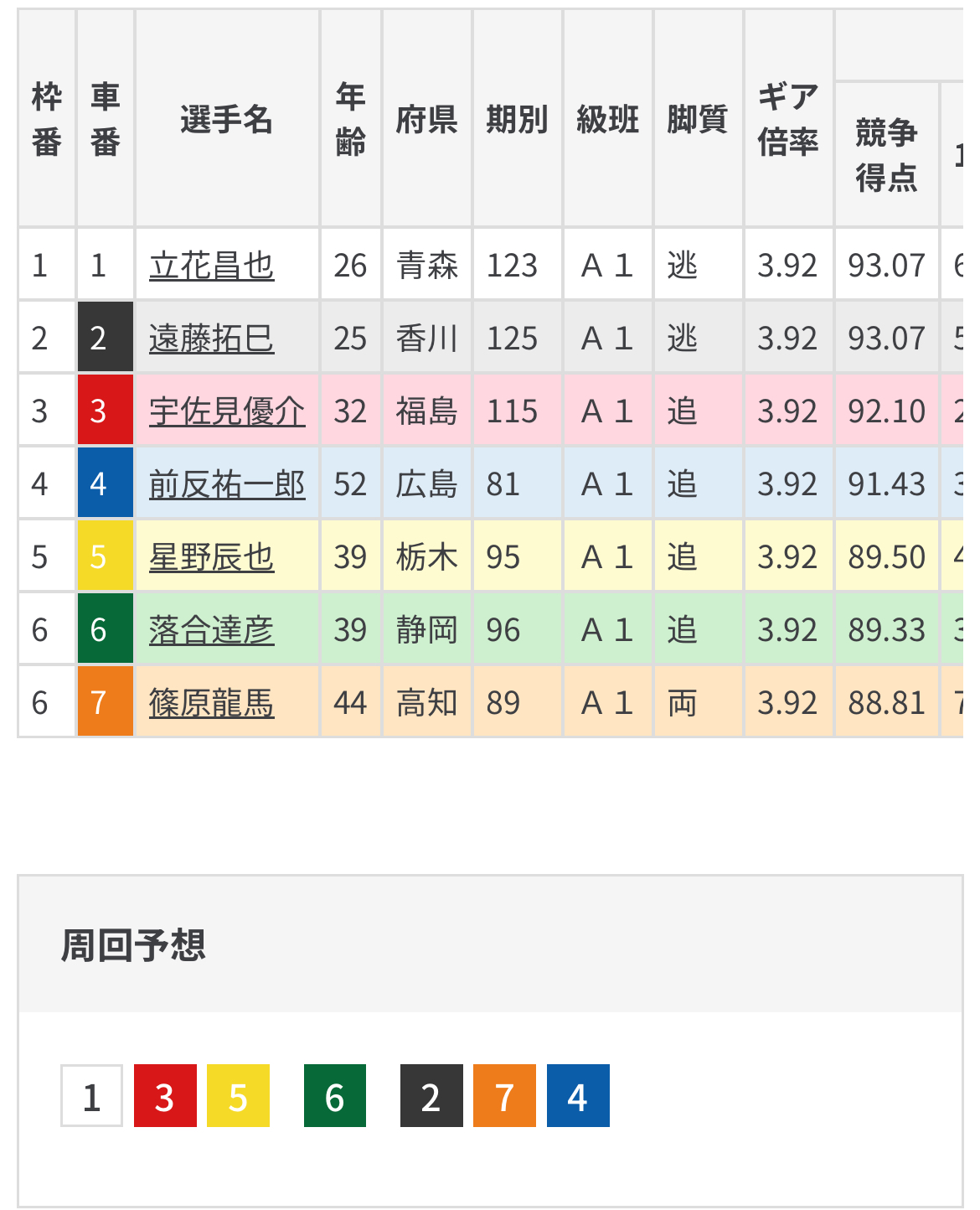 地元ながら前節は予選敗退と調子の波が激しい篠原が調子の良さそうな遠藤に追走できるかは考えもの。