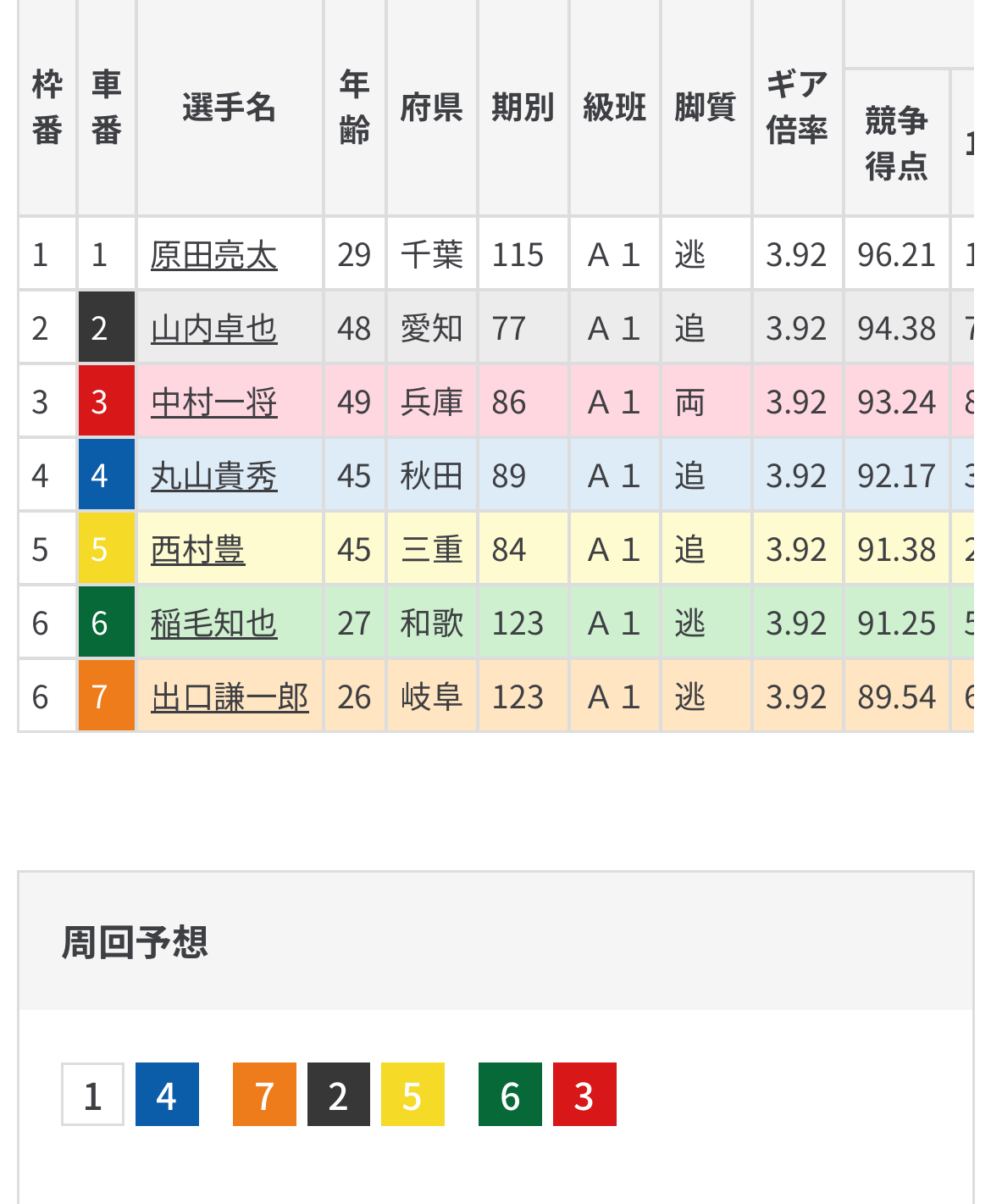 中村に前を任されたら稲毛と原田で主導権争いとなれば伊東で前節優勝の出口謙一郎が脚を溜めて捲り一発。