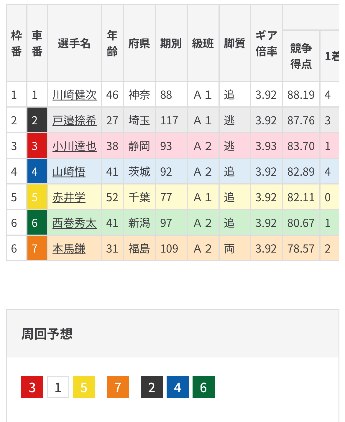 前回、自力でイマイチだったがここでもスタイルは変わらない小川の先行から抜け出す川崎の抜け出しに期待します。