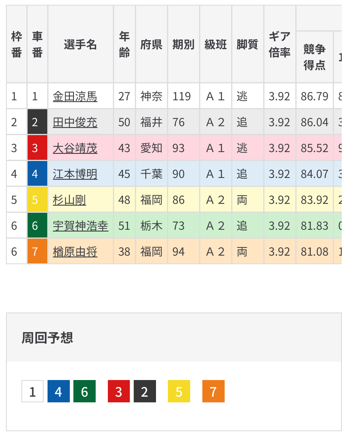 大谷と金田のやり合いで脚を消耗なら宇賀神の流れ込みにまだタテある杉山の捲り一発に警戒