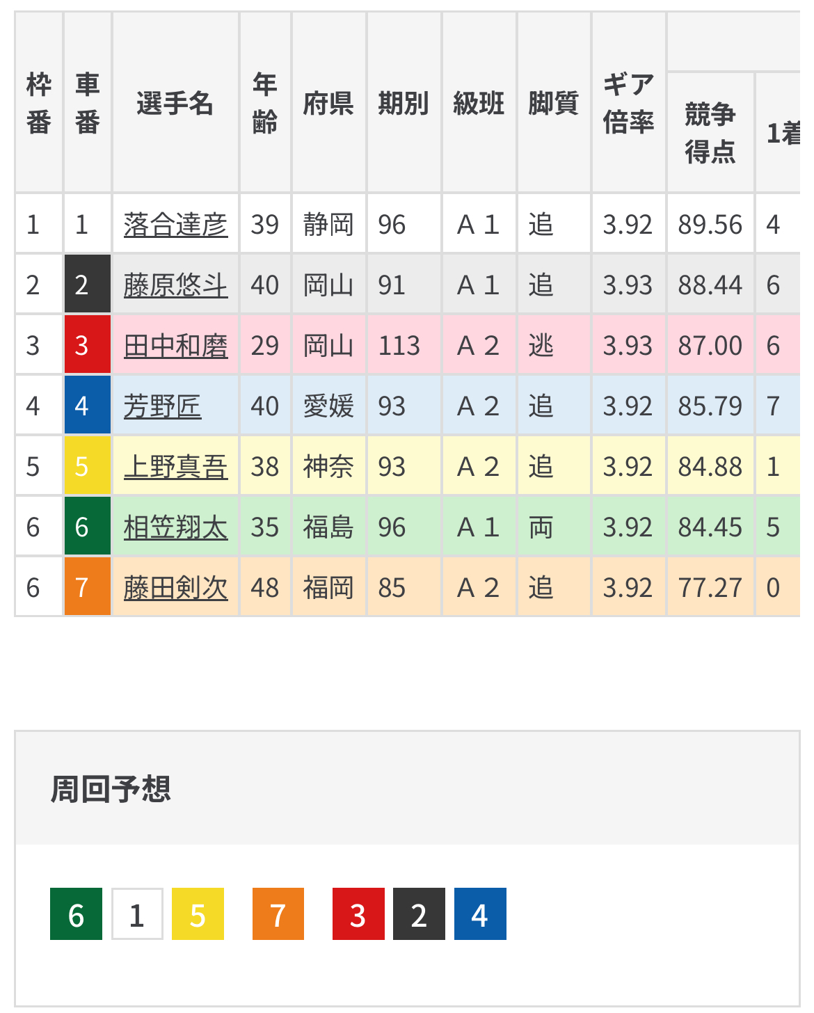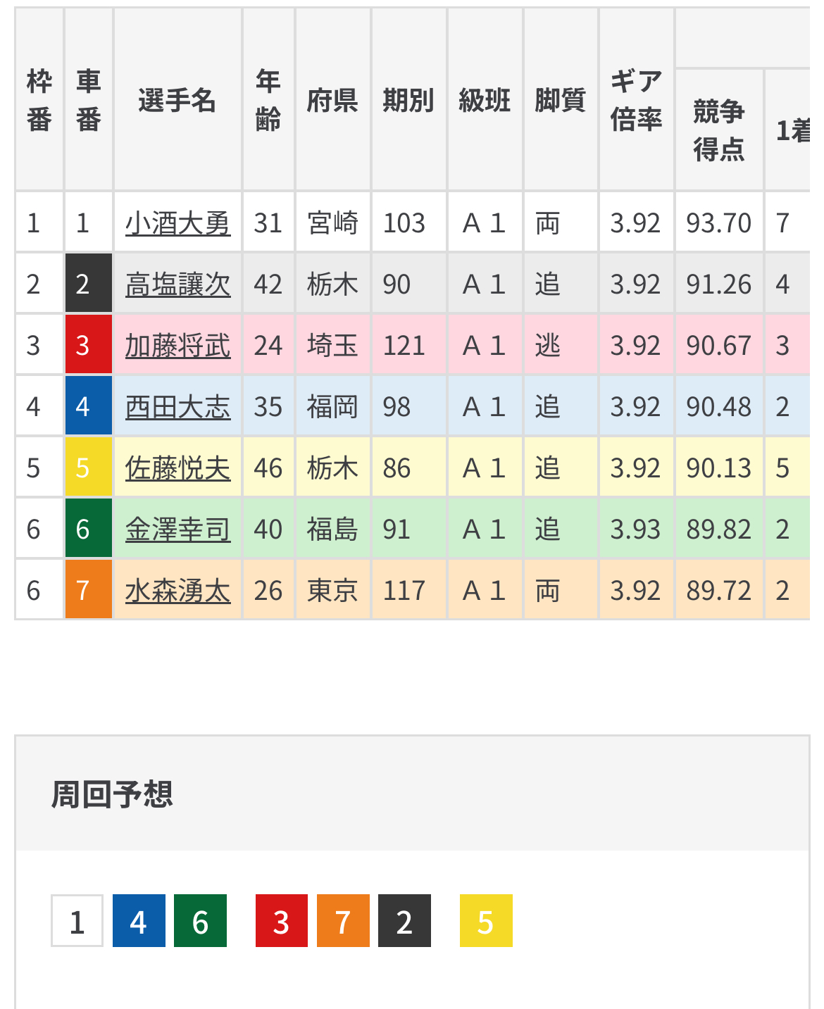 タテあるものの前回の走りを見ると状態はいいとは言えずで先行一車となれば小酒の番手飛びつきから考えていきたい。