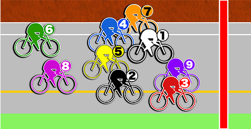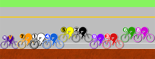 ❾河崎の捲り切りをまずは狙うが、①雨谷の仕事も考えると止まってしまう可能性もある。