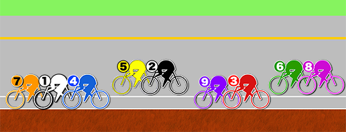 捲りに展開は向く形になって、❺渡邊と❾河崎に展開が向く。