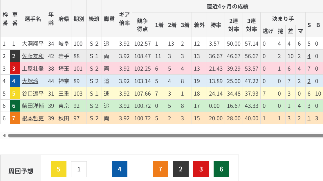 51/7236/4の初手並びから、⑤谷口の突っ張り先行展開に。