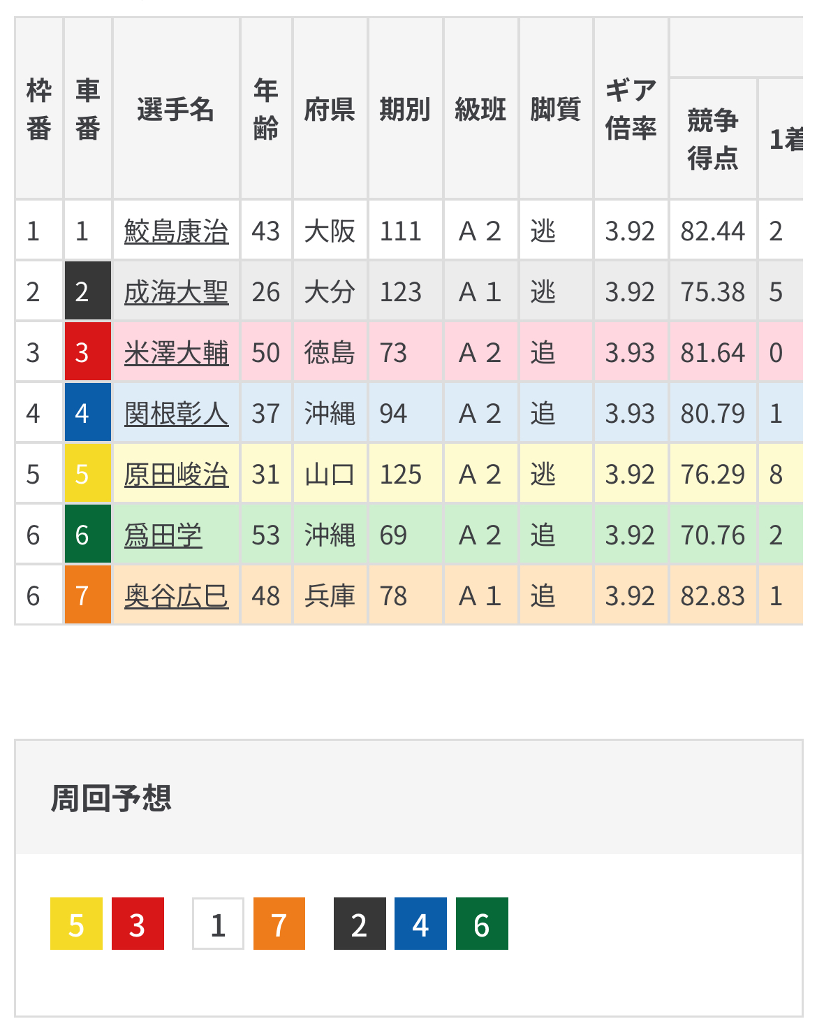 成海、原田どちらが先行ならその各番手との絡みになりそう。