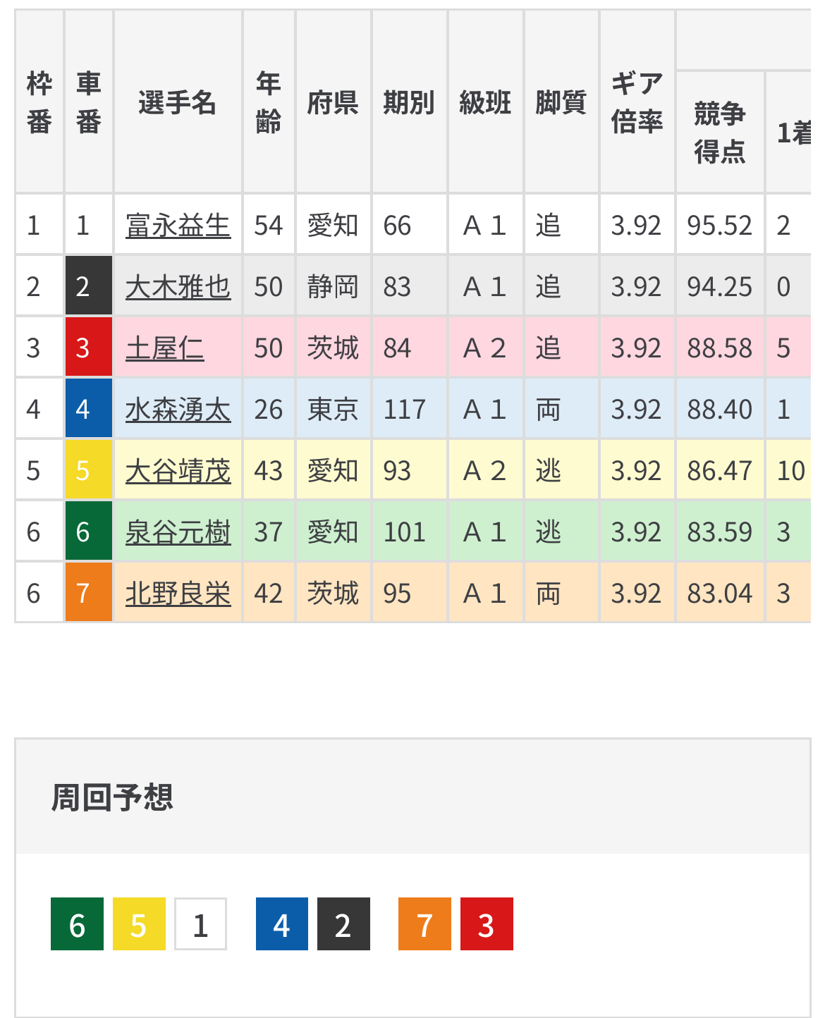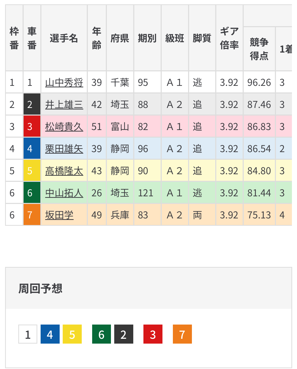 岡部も内枠だけに田口よりも早いスタートと取りに行けば上記と同じで吉竹だけ飛んできて番手にハマる岡部も全然ありえる話で