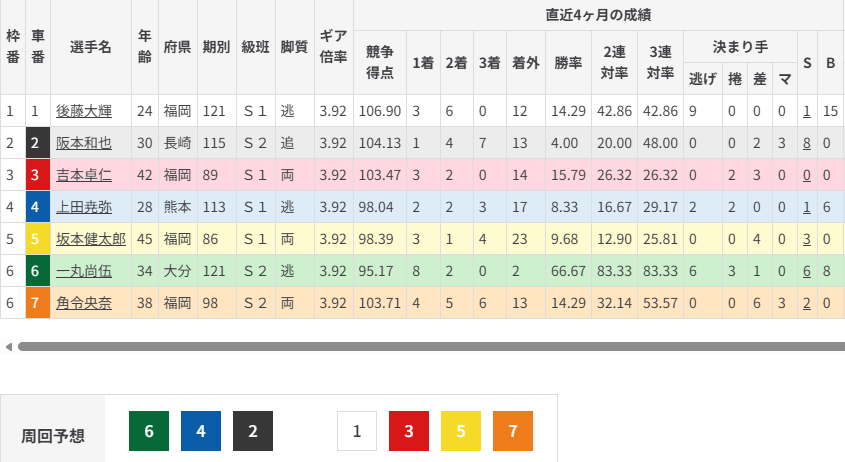 ⑥一丸の突っ張り先行で①後藤を出させない展開を狙いたい。