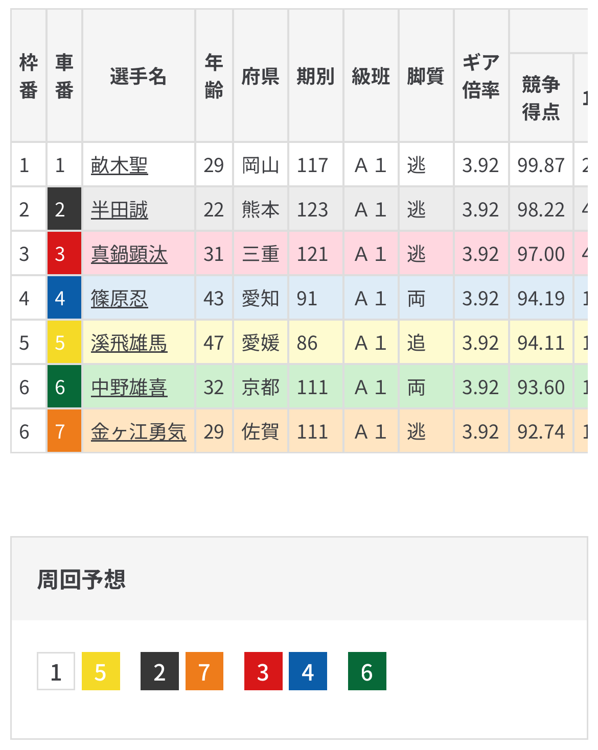 畝木と半田は捲り主体の選手でこのレース本格先行は真鍋だけで真鍋の主導権が見込める。