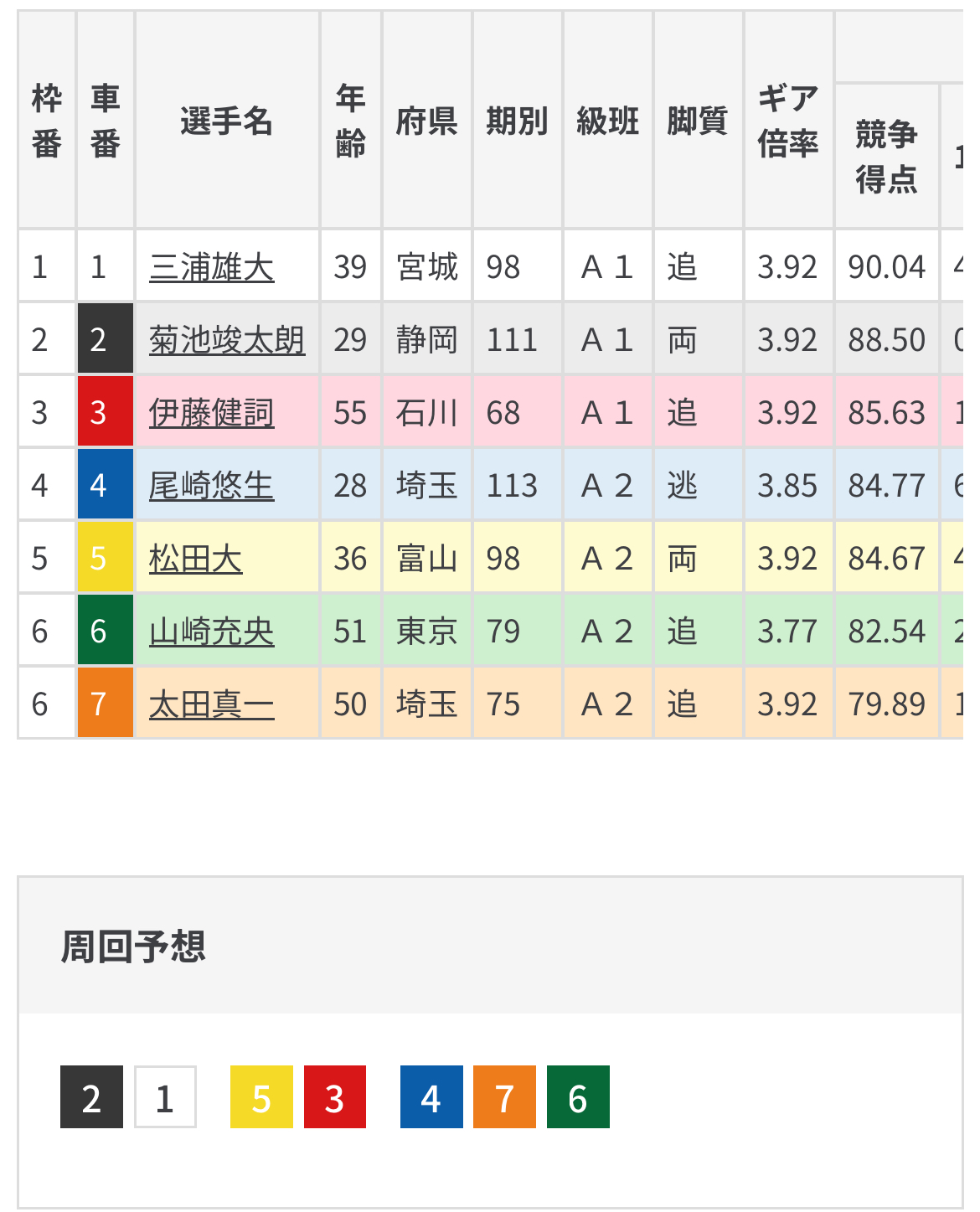 番手の太田と3番手山崎の援護があれば尚更有利な条件で戦える。