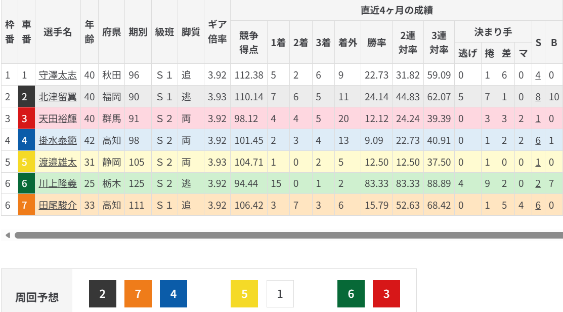 ⑤渡邉が中団取りに行くのであれば話は別だが、本人は復帰戦で満足はしてないし、実際全く良くない。