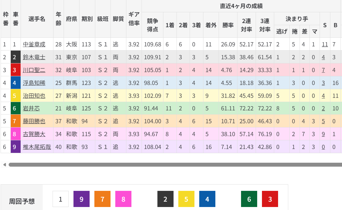 突っ張りもできる選手で果敢に先行するイメージもあるので、ここは①中釜の突っ張り先行展開に絞って狙っていきたい。