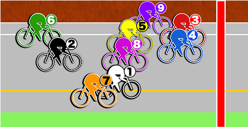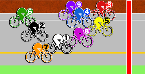 この場合は前中団に❺神田がいる想定なので、ここの追い込みが届いた時を狙いたい。