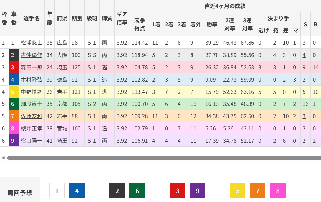 ①松浦は昨日の木村に抜かれた縦脚、②古性は昨日の塩島を叩けない縦脚、どちらもSSとしての力を発揮できていない。