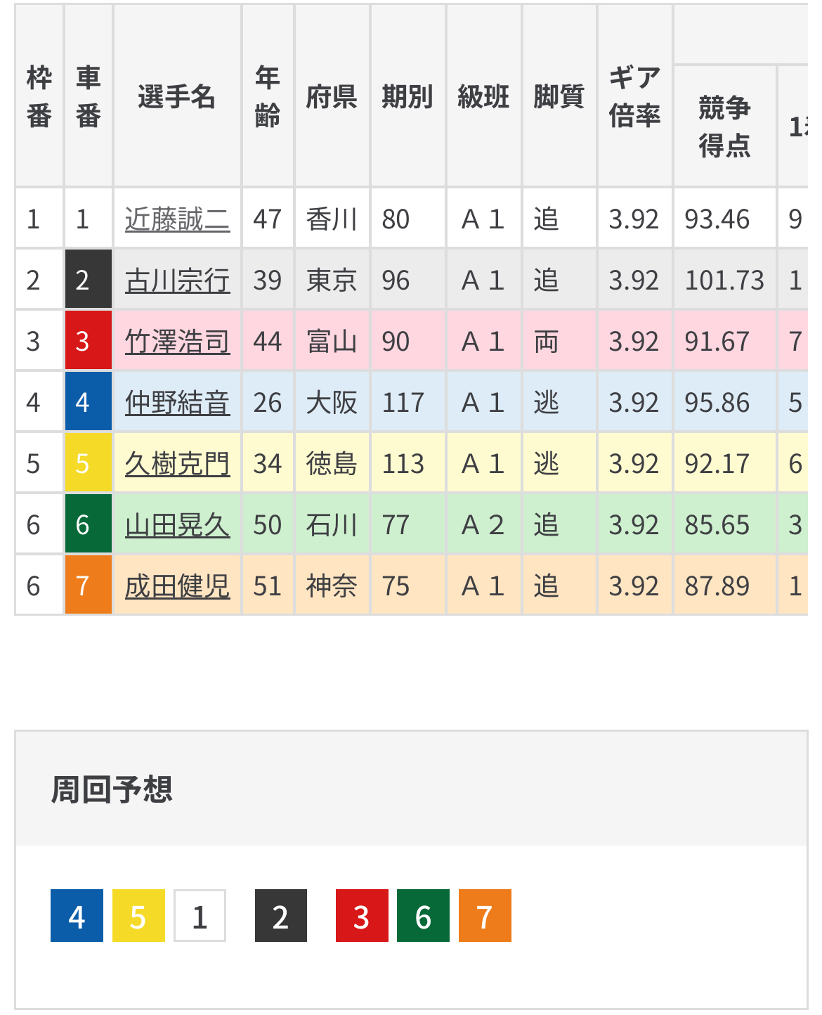 仲野の思わずの早い仕掛けなら3番手続く近藤の2着目も一考。