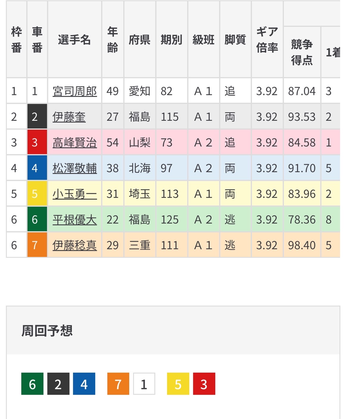 伊藤稔真が今日は徹底先行型平根の3車ラインを捲れるとは思えずココはもう1人の伊藤奎が番手から抜け出すのに期待します。