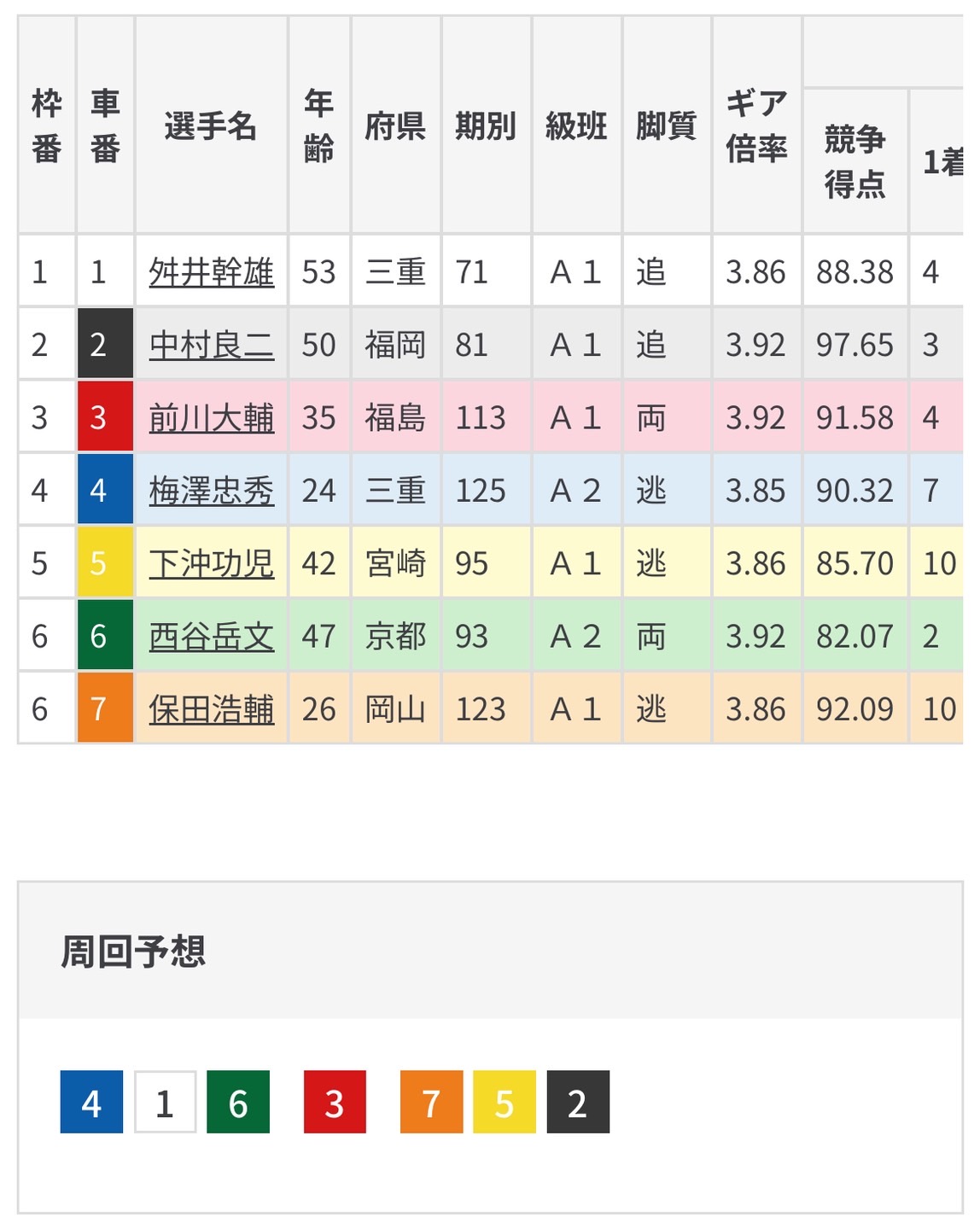 ただ最近積極的な鈴木が今日も内容を求めた仕掛けをしてくることがあれば初日同様に鈴木がカマシて離れる佐藤が再度見られれば番手にハマる東矢の抜け出しから狙う。