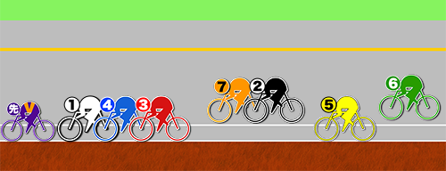 抑えとして、❶鈴木が逃げて❼東矢と踏み合った時に❻の捲りが飛んできて、切り替える④佐藤を差す③渡部の6-3-4だけは抑える。