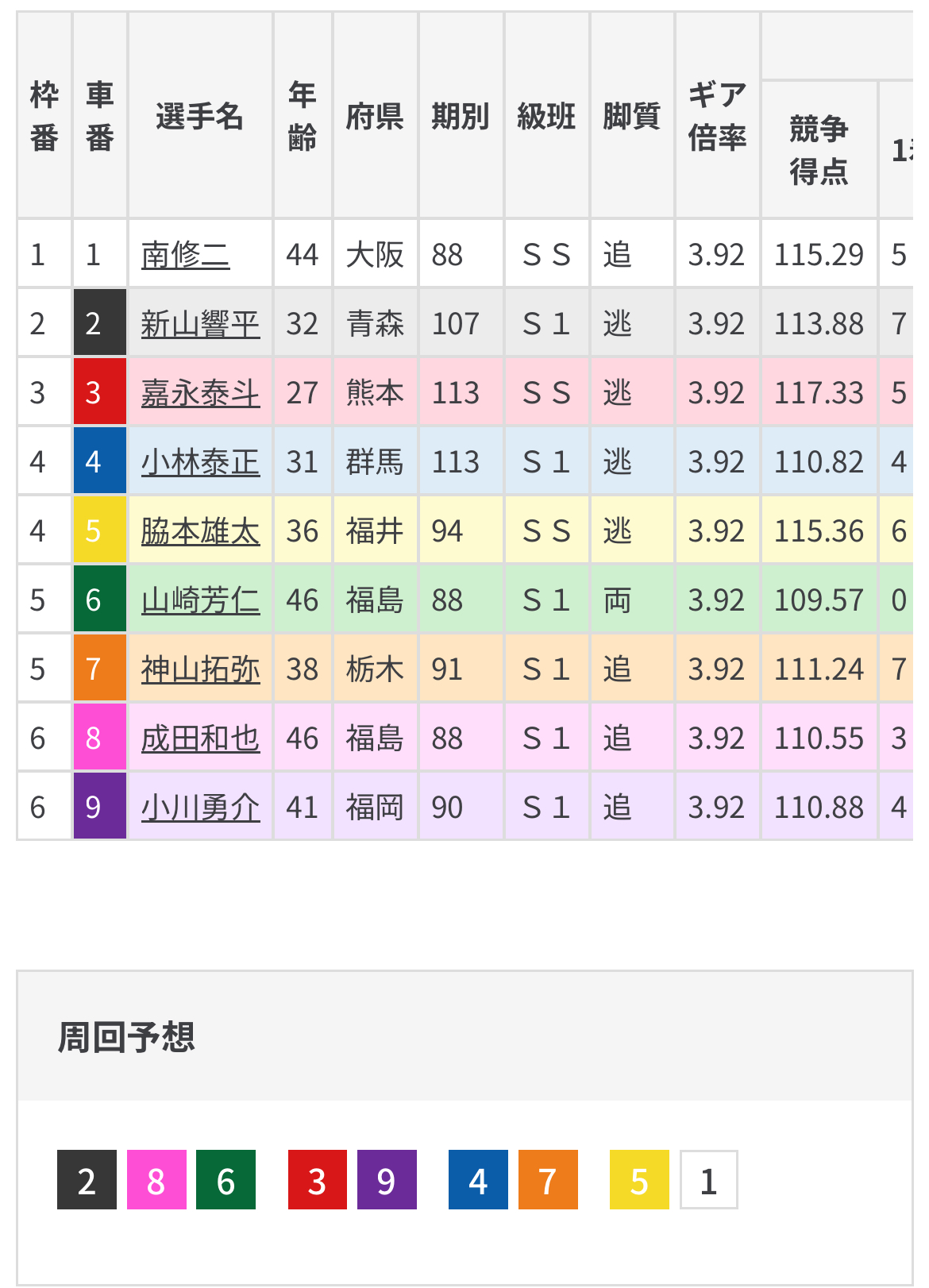 そうなると突き抜けるのは番手小岩に展開が向くことになりそう。