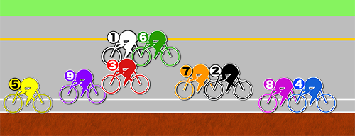 切って切ってで❷吉田が叩いて最初の隊列に戻って先行していく展開を想定する。