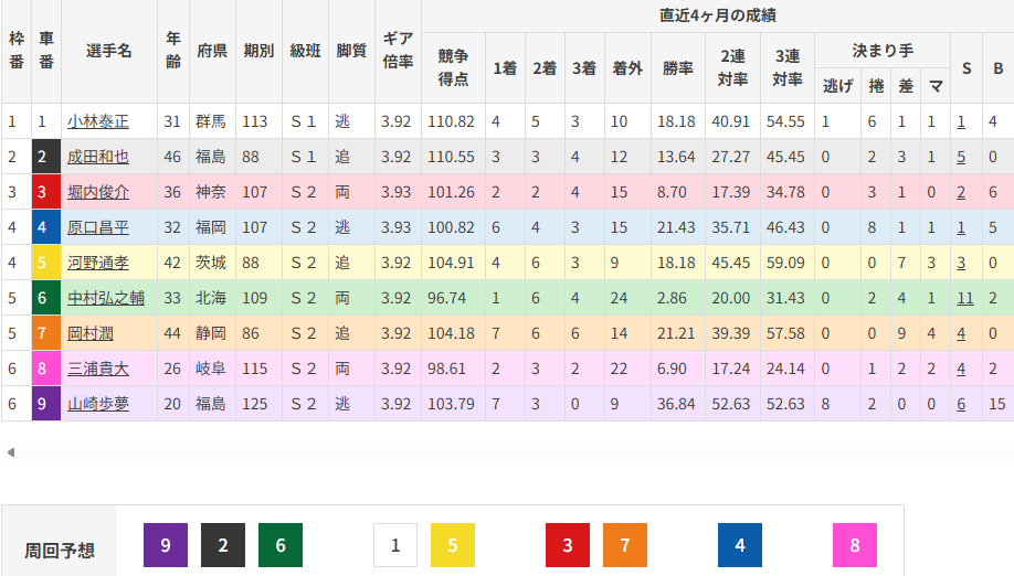 となれば①小林はすんなり4番手が取れる中団に待機。