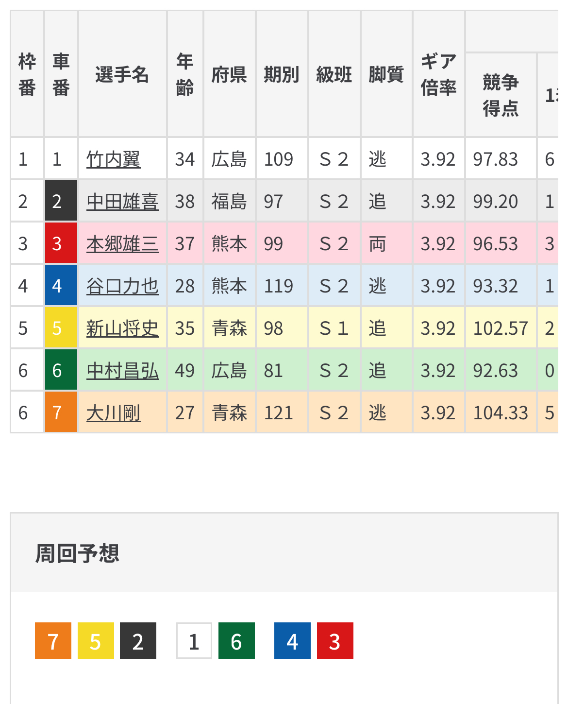 立川はよかったもののその後の大垣はぎっくりの影響らしく今節もなんとも言えないだけに松浦の先行も捲れるかも怪しい。