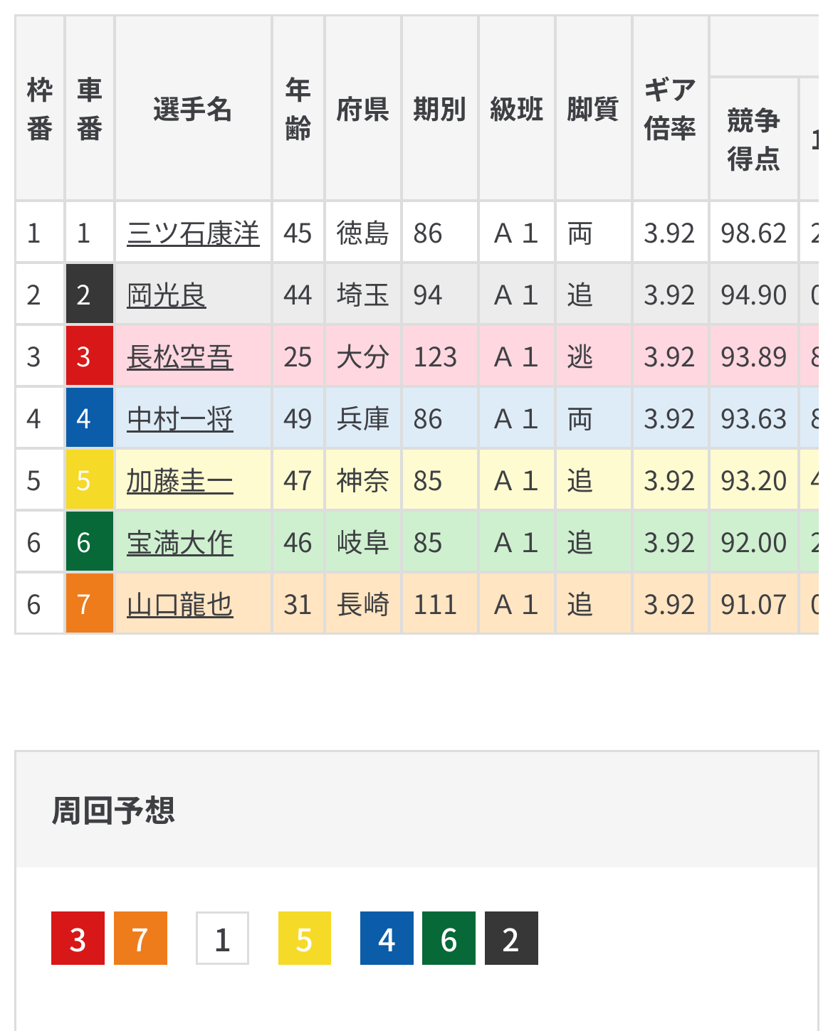 長松が積極性の中自力選手だけにココは中村の積極先行になりそう。